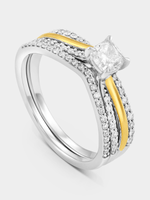 Expertly crafted in 9ct Yellow Gold and Sterling Silver, this beautiful twinset ring features a cushion-cut Lab Grown Diamond solitaire and bands glittering with pavé set stones. The total Diamond weight is 0.81 carats.
