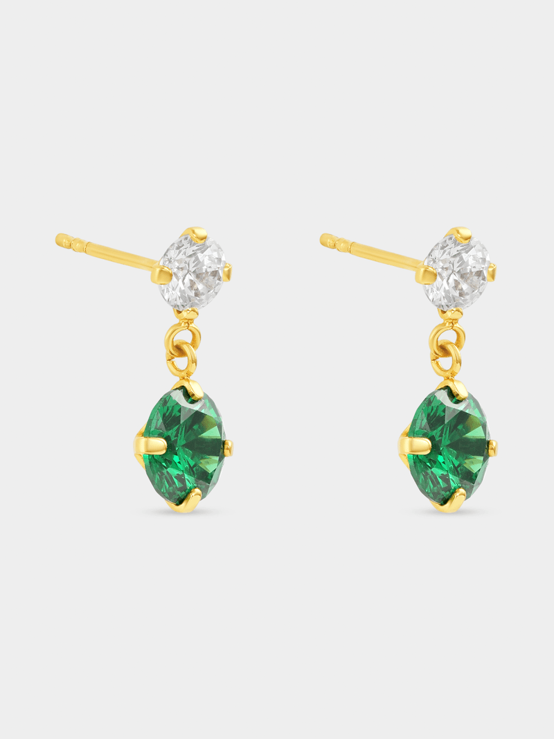 Expertly crafted in 9ct Yellow Gold, these beautiful Drop Earrings feature duos of round-cut green and white Cubic Zirconia.