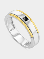 Expertly crafted in 5ct Yellow Gold and Sterling Silver, this stylish two-tone ring features pavé set Black Diamonds in a square setting.