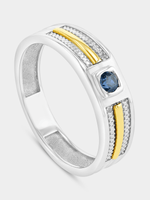 Expertly crafted in 5ct Yellow Gold and Sterling Silver, this stylish two-tone ring feature a round-cut Created Blue Sapphire in a square setting and a band enhanced by intricate beading.