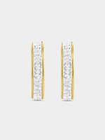 Expertly crafted in Sterling Silver bonded with 9ct Yellow Gold, these open ended hoop earrings glitter with pavé set Crystals.