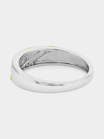 Expertly crafted in 5ct Yellow Gold and Sterling Silver, this stylish two-tone ring features an intricately beaded diagonal design enhanced by an Earth Grown Diamond accent.