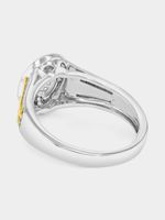 Expertly crafted in 5ct Yellow Gold and Sterling Silver, this opulent ring features an oval cluster of round-cut Earth Grown Diamonds and Created White Sapphires in a halo setting and a broad band enhanced by intricate beading.
