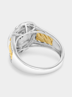 Expertly crafted in 9ct Yellow Gold and Sterling Silver, this opulent triple set ring features an oval cluster of single-cut Lab Grown Diamonds in a halo setting and a chain link-inspired band enhanced by intricate beading.