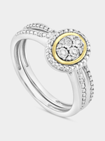 Expertly crafted in 5ct Yellow Gold and Sterling Silver, this beautiful twinset ring features an oval cluster of round-cut Lab Grown Diamond in a halo setting and bands enhanced by intricate beading. The total Diamond weight is 0.09 carats.