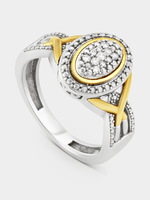 Expertly crafted in 5ct Yellow Gold and Sterling Silver, this beautiful ring features an oval cluster of round-cut Lab Grown Diamonds in a halo setting and an elegantly twisted split-shank band enhanced by intricate beading. The total Diamond weight is 0.10 carats.