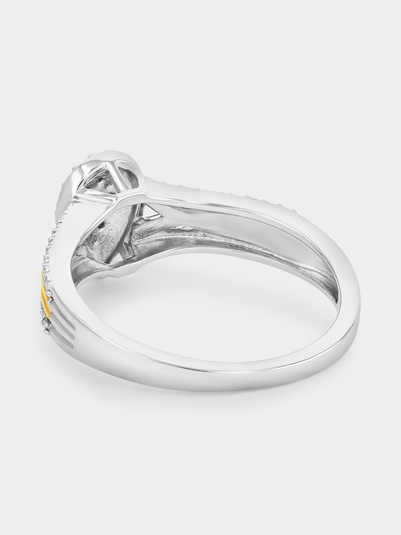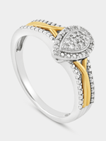 Expertly crafted in 9ct Yellow Gold and Sterling Silver, this beautiful ring features a pear-shaped cluster of round-cut Lab Grown Diamond in a halo setting and an elegantly twisted band enhanced by intricate beading. The total Diamond weight is 0.075 carats.