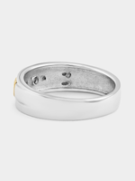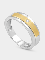 Expertly crafted in 9ct Yellow Gold and Sterling Silver, this stylish two-tone ring features a round-cut Lab Grown Diamond solitaire in a flush setting enhanced by a rectangle design. The total Diamond weight is 0.035 carats.