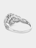 Expertly crafted in 9ct Yellow Gold and Sterling Silver, this opulent ring features a cluster of round-cut Lab Grown Diamonds in a halo setting and an intricately beaded split-shank infinity band sparkling with pavé set stones.