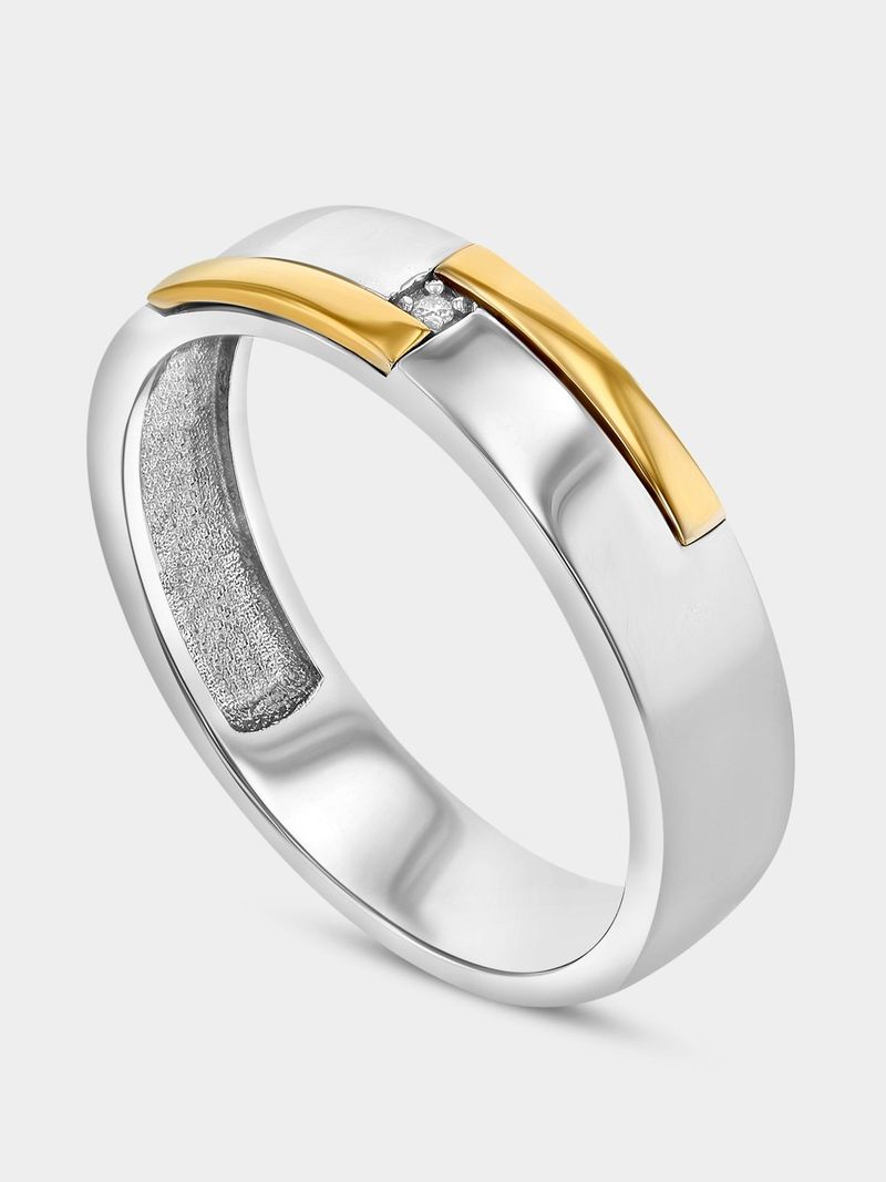 Expertly crafted in 5ct Yellow Gold and Sterling Silver, this stylish two-tone ring features a pavé set Lab Grown Diamond solitaire and a striking geometric design.