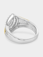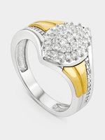 Expertly crafted in 5ct Yellow Gold and Sterling Silver, this alluring ring features a marquise-shaped cluster of round-cut Created White Sapphires including Earth Grown Diamond accents in a halo setting and a band enhanced by intricate beading.