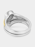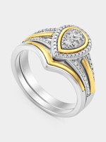 Expertly crafted in 5ct Yellow Gold and Sterling Silver, this beautiful triple set ring features a pear-shaped cluster of round-cut Created White Sapphires including Earth Grown Diamond accents in a halo setting and intricately beaded bands. The total Diamond weight is 0.006 carats.