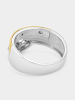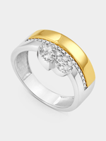 Expertly crafted in 5ct Yellow Gold and Sterling Silver, this beautiful two-tone ring features a round and pear-shaped cluster of pavé set Created White Sapphires including an Earth Grown Diamond accent. The total Diamond weight is 0.003 carats.