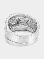 Expertly crafted in 5ct Yellow Gold and Sterling Silver, this magnificent triple set ring features a cluster of round-cut Created White Sapphires and an Earth Grown Diamond in a halo setting and an intricately beaded bands inspired by the beauty of nature.