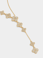Expertly crafted in 18ct Yellow Gold Vermeil, this beautiful clover Y-chain s with pavé set Cubic Zirconia.