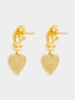 Expertly crafted in 18ct Gold Vermeil, these romantic heart drop earrings glitter with pavé set Cubic Zirconia. Gold Vermeil is Sterling Silver plated with a luxurious layer of 18ct Yellow Gold. The thickness of the 18ct Gold plating is at least 2.5 microns for extended durability.