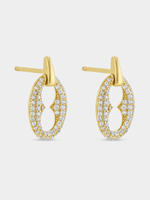 Expertly crafted in 18ct Gold Vermeil, these stylish puffy anchor link stud earrings glitter with pavé set Cubic Zirconia. Gold Vermeil is Sterling Silver plated with a luxurious layer of 18ct Yellow Gold. The thickness of the 18ct Gold plating is at least 2.5 microns for extended durability.