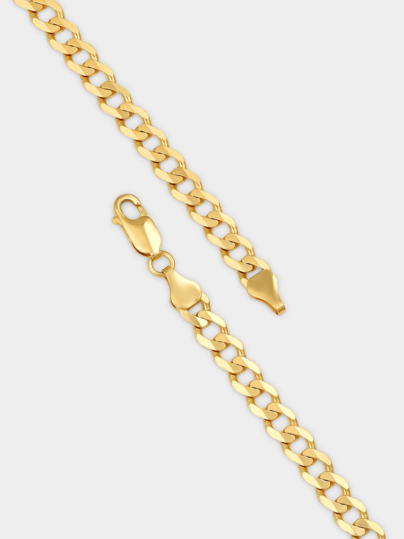 This stylish 55cm Curb chain is expertly crafted in 18ct Gold Vermeil. Gold Vermeil is Sterling Silver plated with a luxurious layer of 18ct Yellow Gold. The thickness of the 18ct Gold plating is at least 2.5 microns for extended durability.