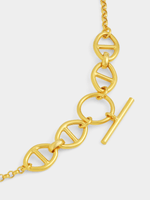 This contemporary flat anchor Bracelet with a fob is expertly crafted in 18ct Gold Vermeil.