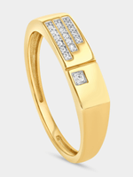 Expertly crafted in 5ct Yellow Gold, this stylish flat top ring features a bar graph-inspired design geometric design enhanced by a pavé set Created White Sapphire and Earth Grown Diamond accent.