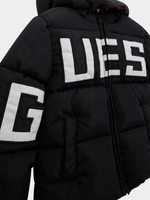 Stay warm in style with the Younger Boy Guess Hooded Padded Jacket. Made from 100% polyester, this jacket features a cozy padded design perfect for chilly days.