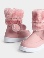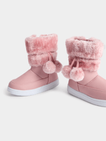 Elevate your little one's winter style with our adorable pink snow boots featuring playful pom poms! Keep her cozy with the faux fur cuff and enjoy easy on-off with the side zip. Perfect for young adventurers. Step into fun and comfort!